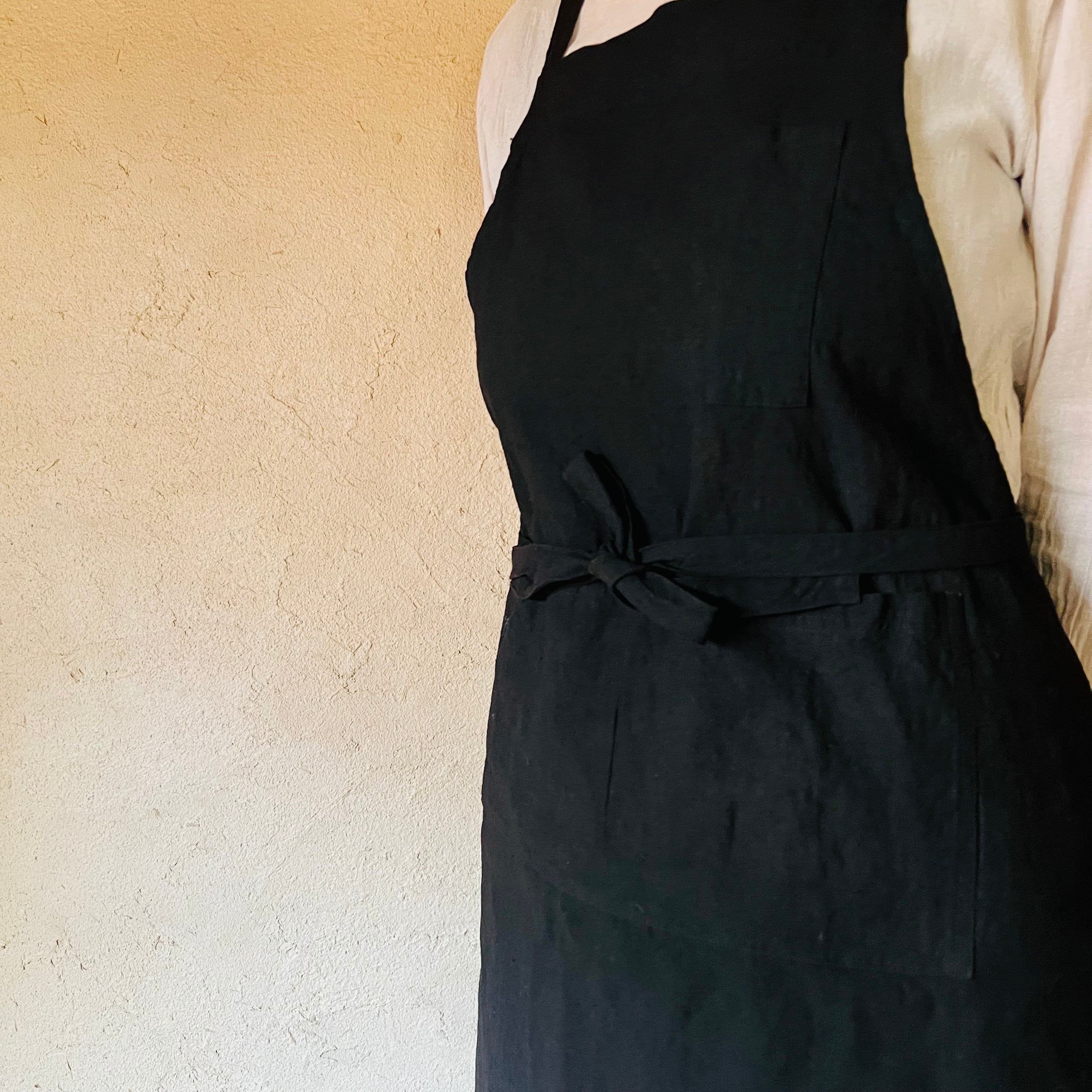 リネンコットンに息づく黒は、ただの黒ではなく、光の中で微妙に揺らぎ、