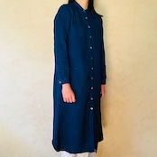 リュウキュウ藍染ダブルガーゼ・シャツワンピース(亜麻コットン)数量限定